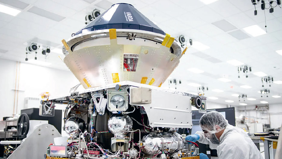 La capsule Varda W-1 (en partie haute), ici en intégration, a mené en 2024 des expériences en orbite sur le médicament anti-VIH Ritonavir